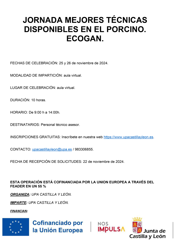 JORNADA MEJORES TÉCNICAS DISPONIBLES EN EL PORCINO. ECOGAN